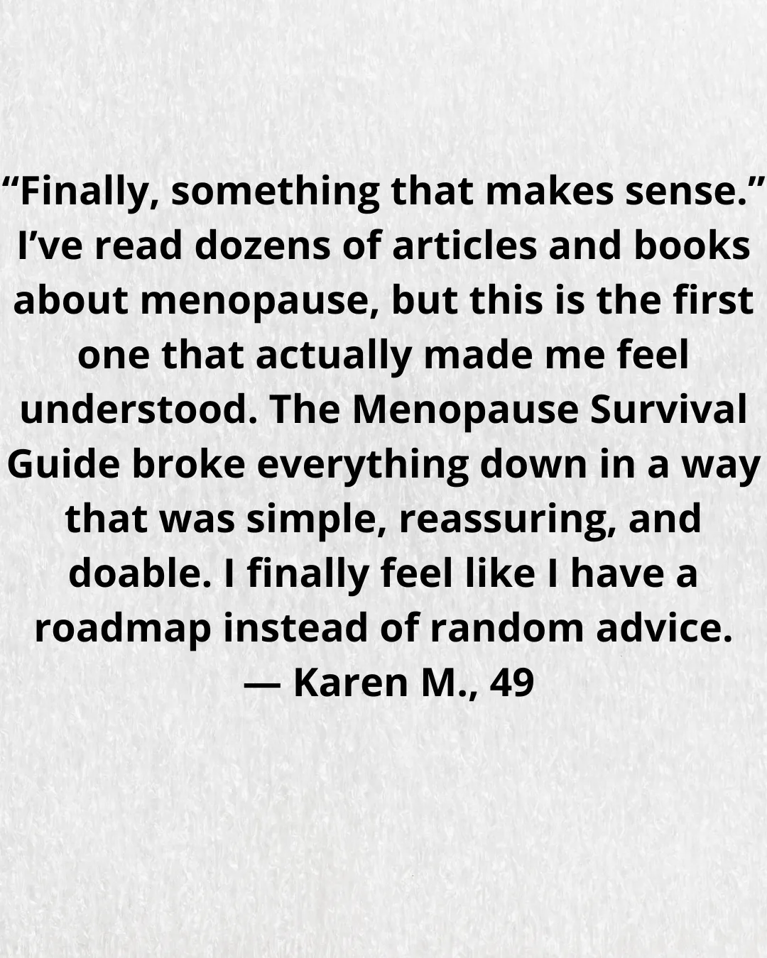 Disclaimer: The information provided on this website and in The Menopause Survival Guide is for informational and educational purposes only and is not medical advice. The content is based on publicly available research, general wellness principles, and personal experiences. It is not a substitute for professional medical advice, diagnosis, or treatment. Always consult with a qualified healthcare provider before making any changes to your health, diet, or treatment plan.